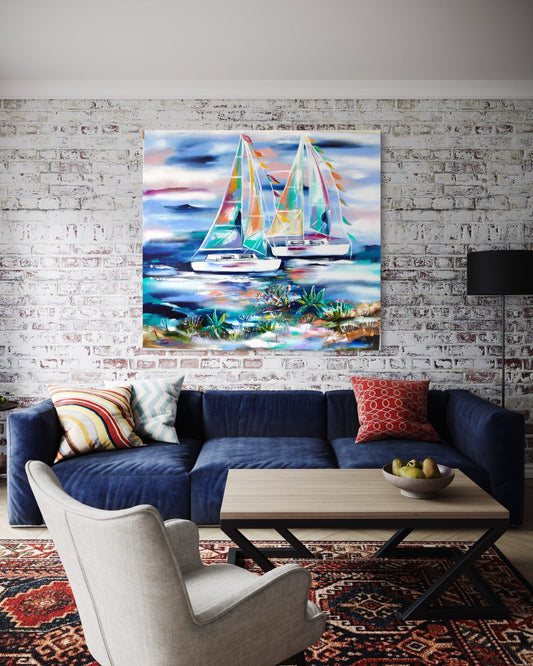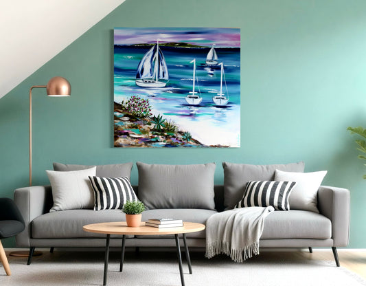 Sailing into Serenity: A Coastal Escape on Canvas - 1.1x1