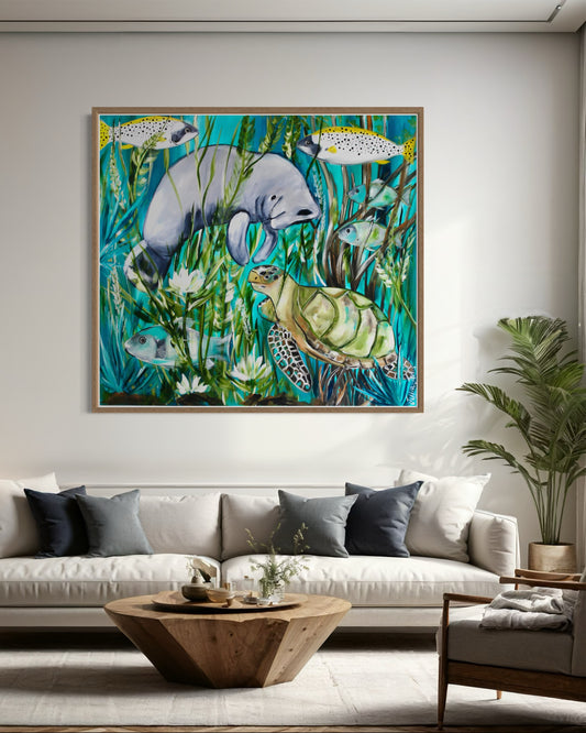 Seagrass Stalking - Dugong and her calf - 120 x 84 cm