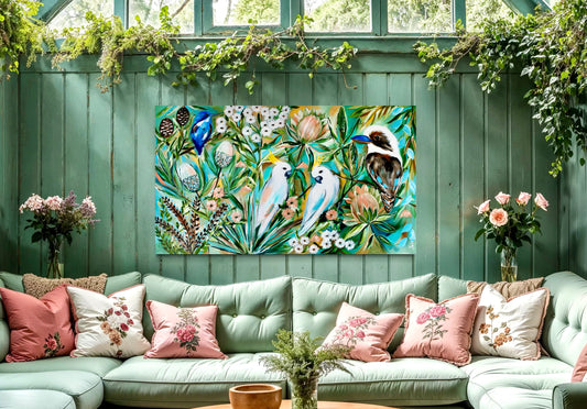 Feathered Friends - a symphony of native birds - 140 x 84 cmVendor:Julia Jones ArtRegular price $700.00Regular priceUnit price / per-