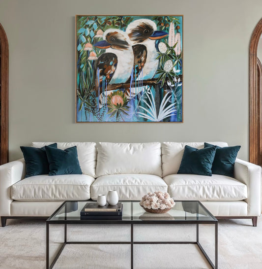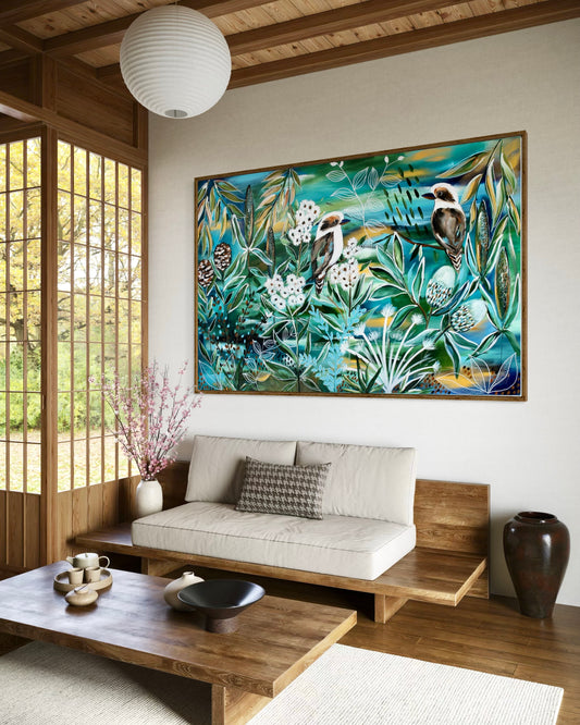 Lush Whispers - Kookaburras in a native retreat - 1.2x820Vendor:Julia Jones ArtRegular price $680.00Regular priceUnit price / per-