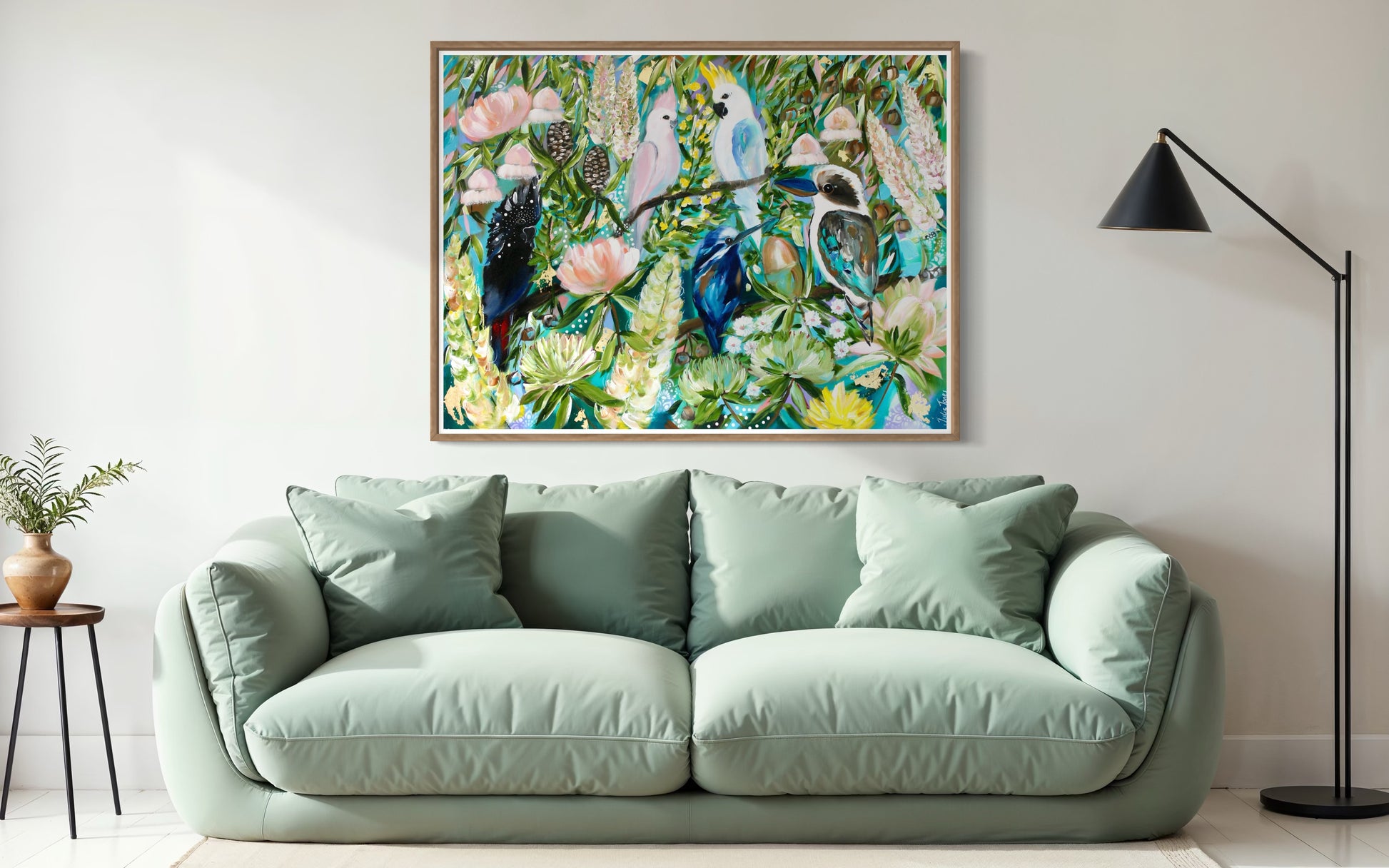 A statement piece that speaks to the beauty of our unique wildlife and flora, Australiana Symphony is perfect for art lovers seeking a vibrant connection to the Australian bush.