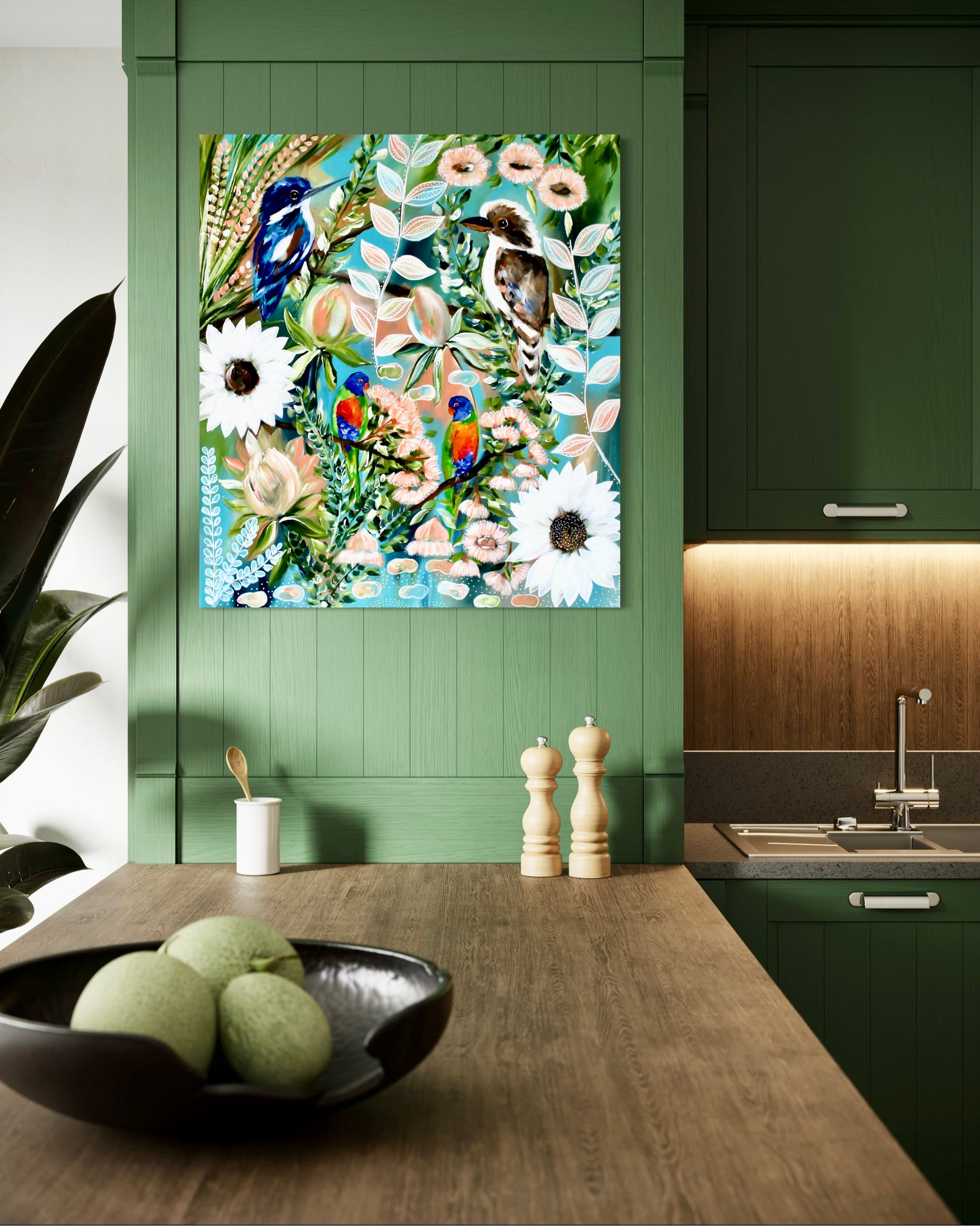 Joyful yet balanced, Bushland Conversations is designed to bring life, colour and a strong connection to nature indoors. It is perfectly suited to coastal homes, country interiors and light-filled spaces, and will appeal to lovers of Australian birds, native botanicals and expressive statement artwork.