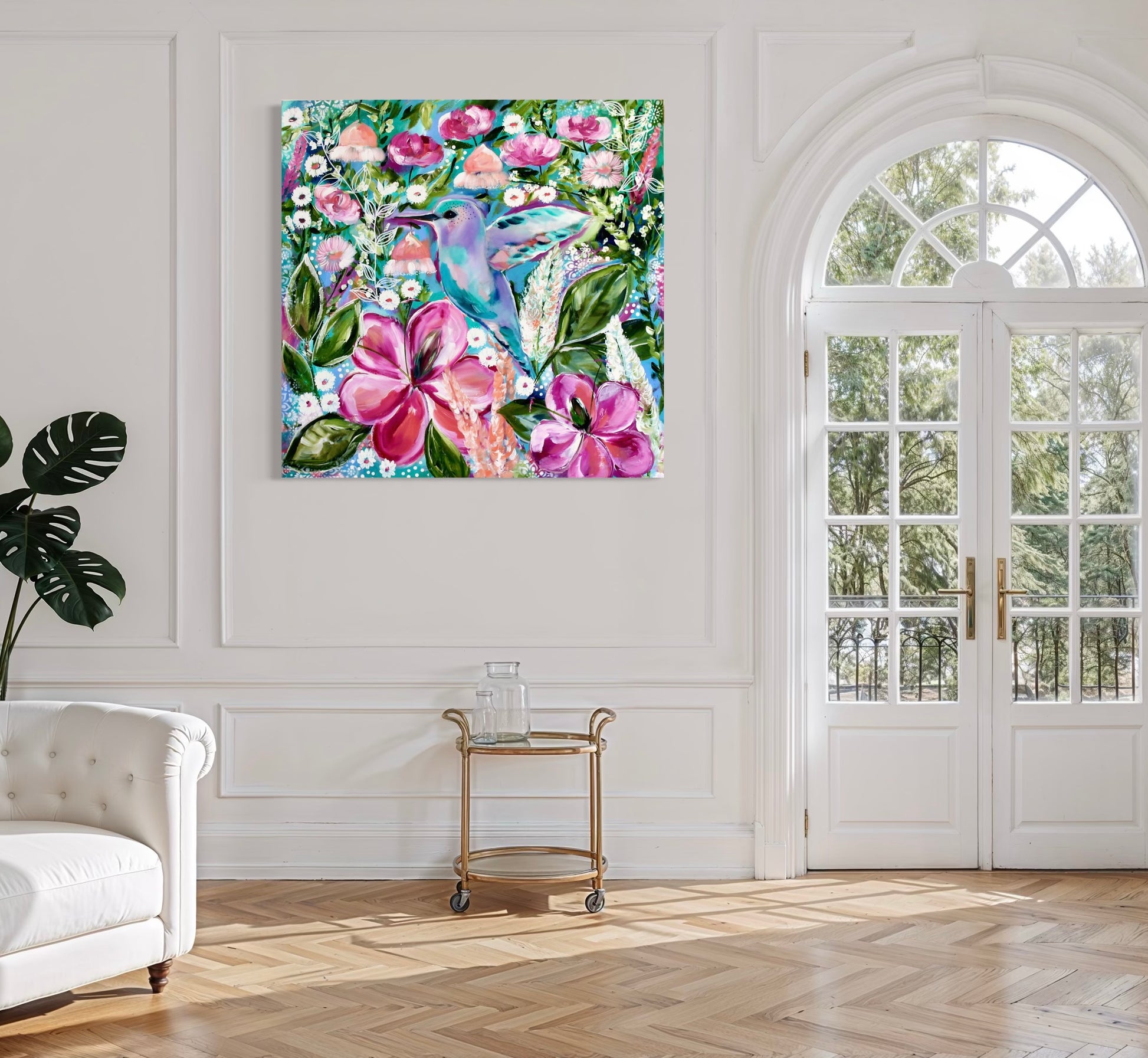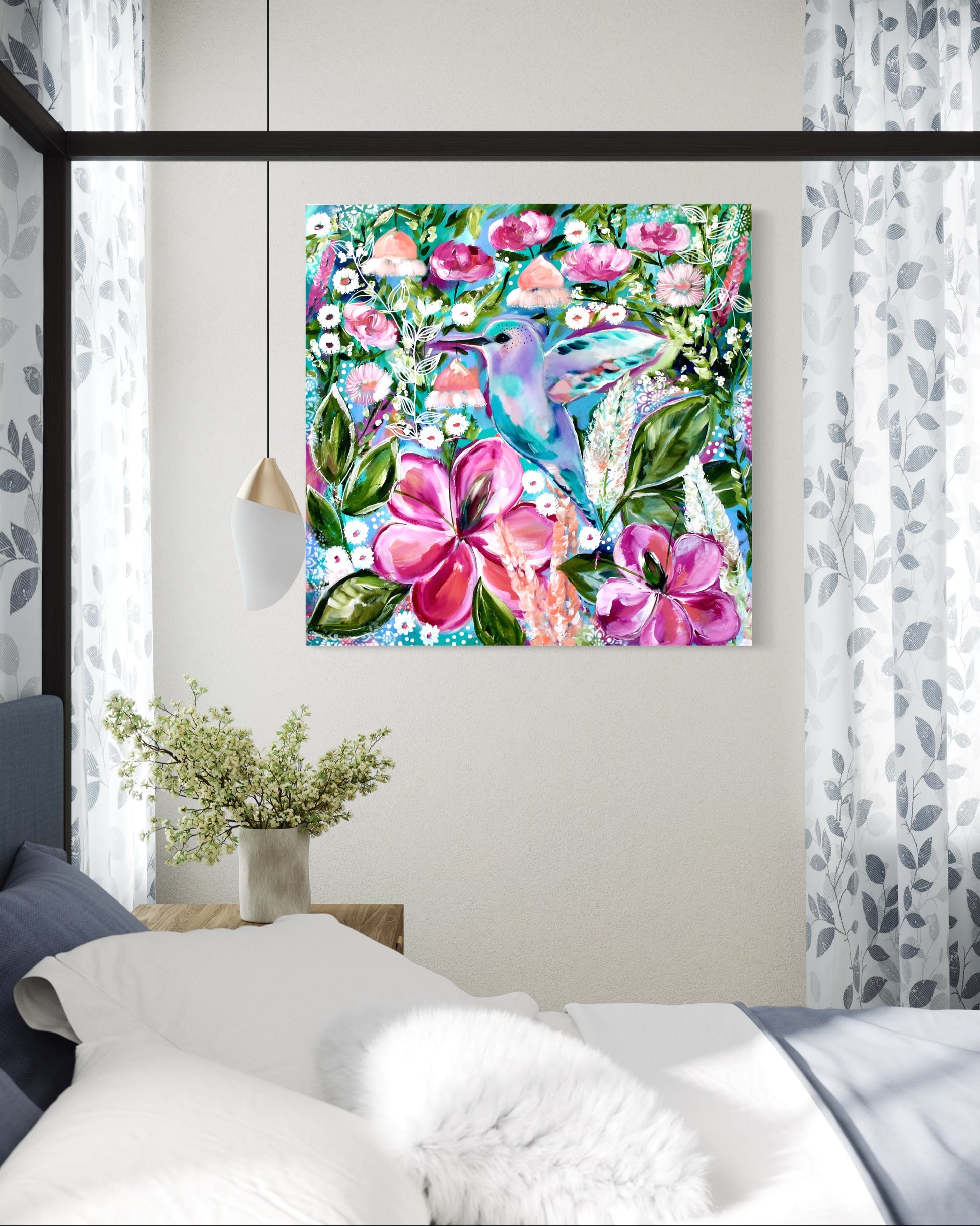 Medium: Acrylic on premium canvas with resin-coated hummingbird