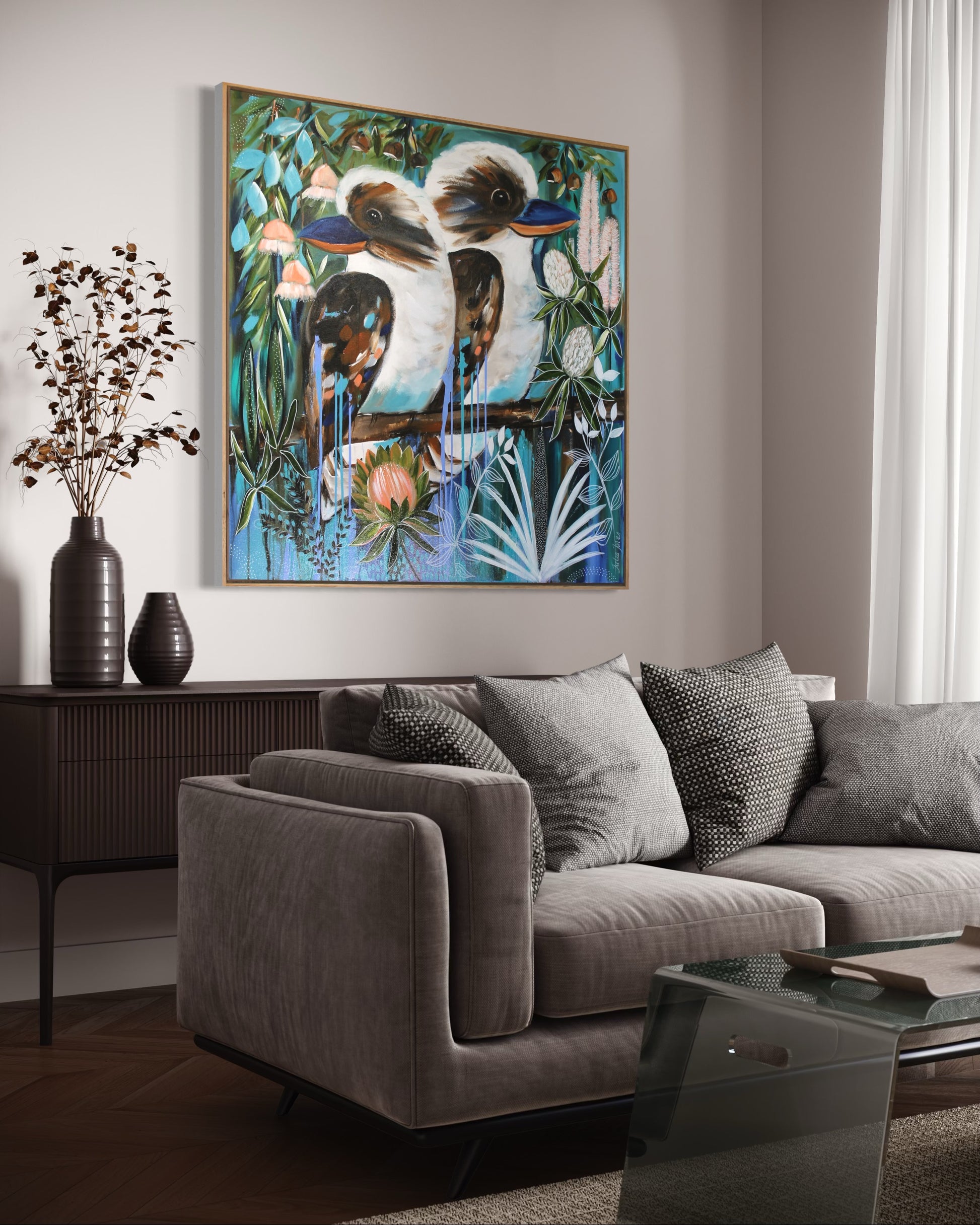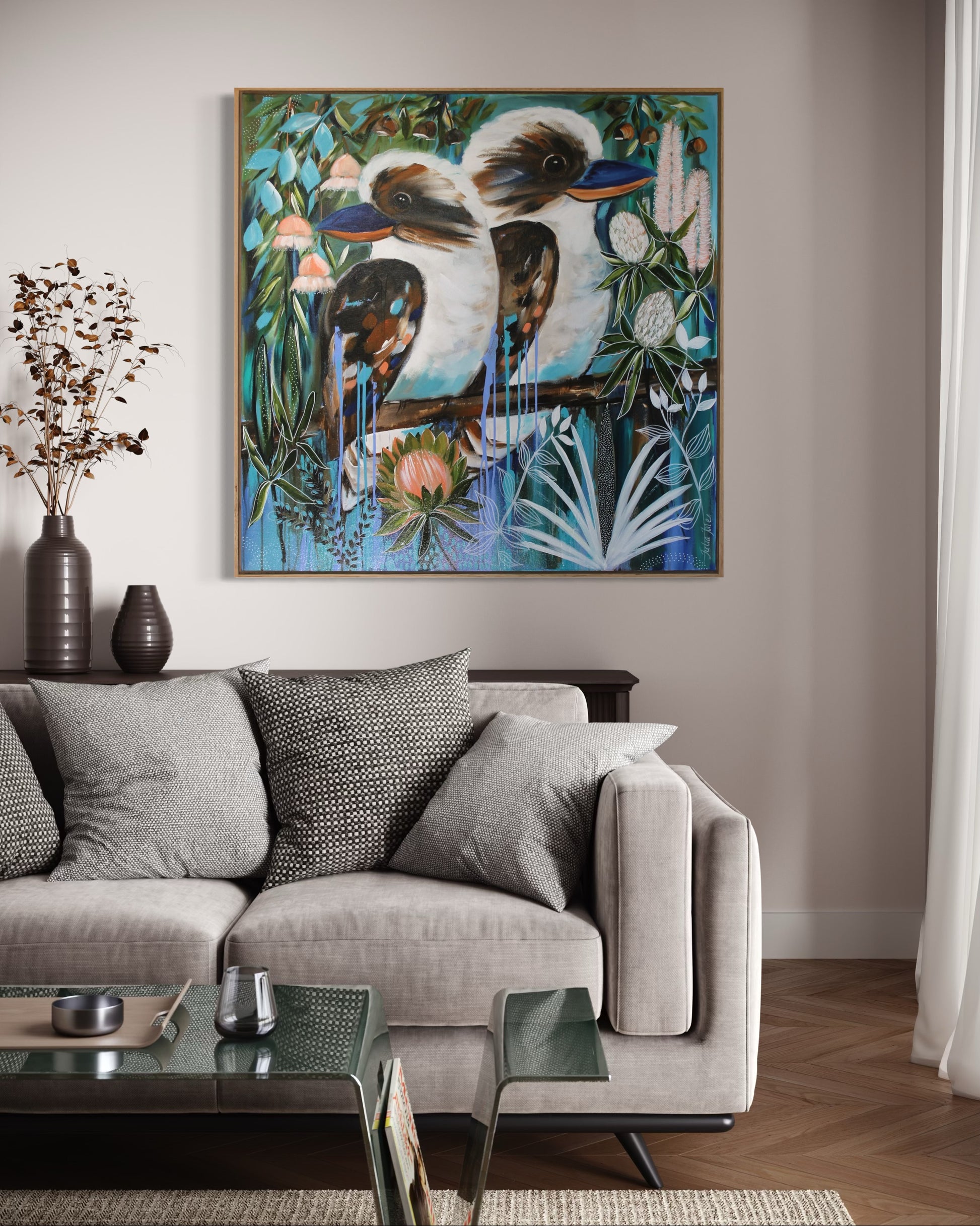Kindred Spirits is perfect for anyone who feels a deep connection to Australian wildlife, nature-inspired interiors, or meaningful storytelling through art. Whether displayed in a living room, hallway, or personal sanctuary, this piece will bring a sense of harmony, heart, and a little kookaburra charm into your home.