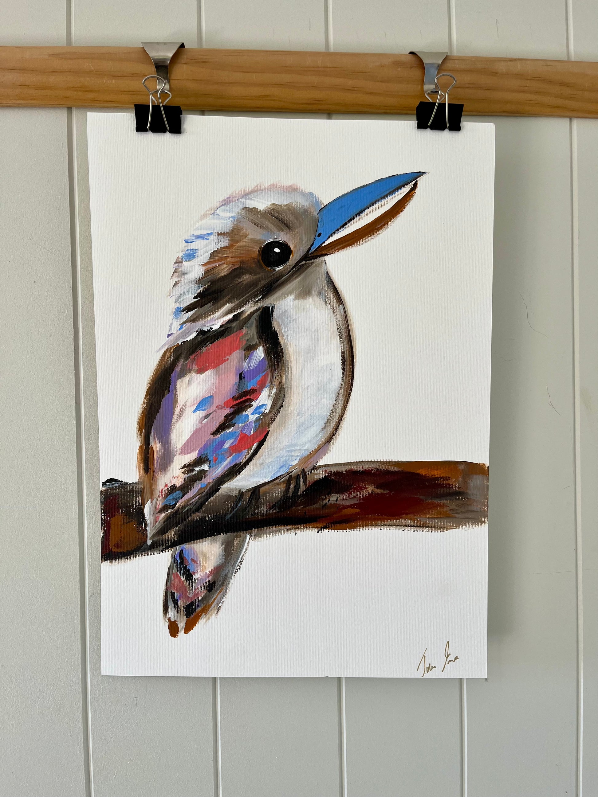 A beautifully detailed, super cute kookaburra captured in my signature style. This is a true one-off original — not a print — making it a special and unique piece for your home.