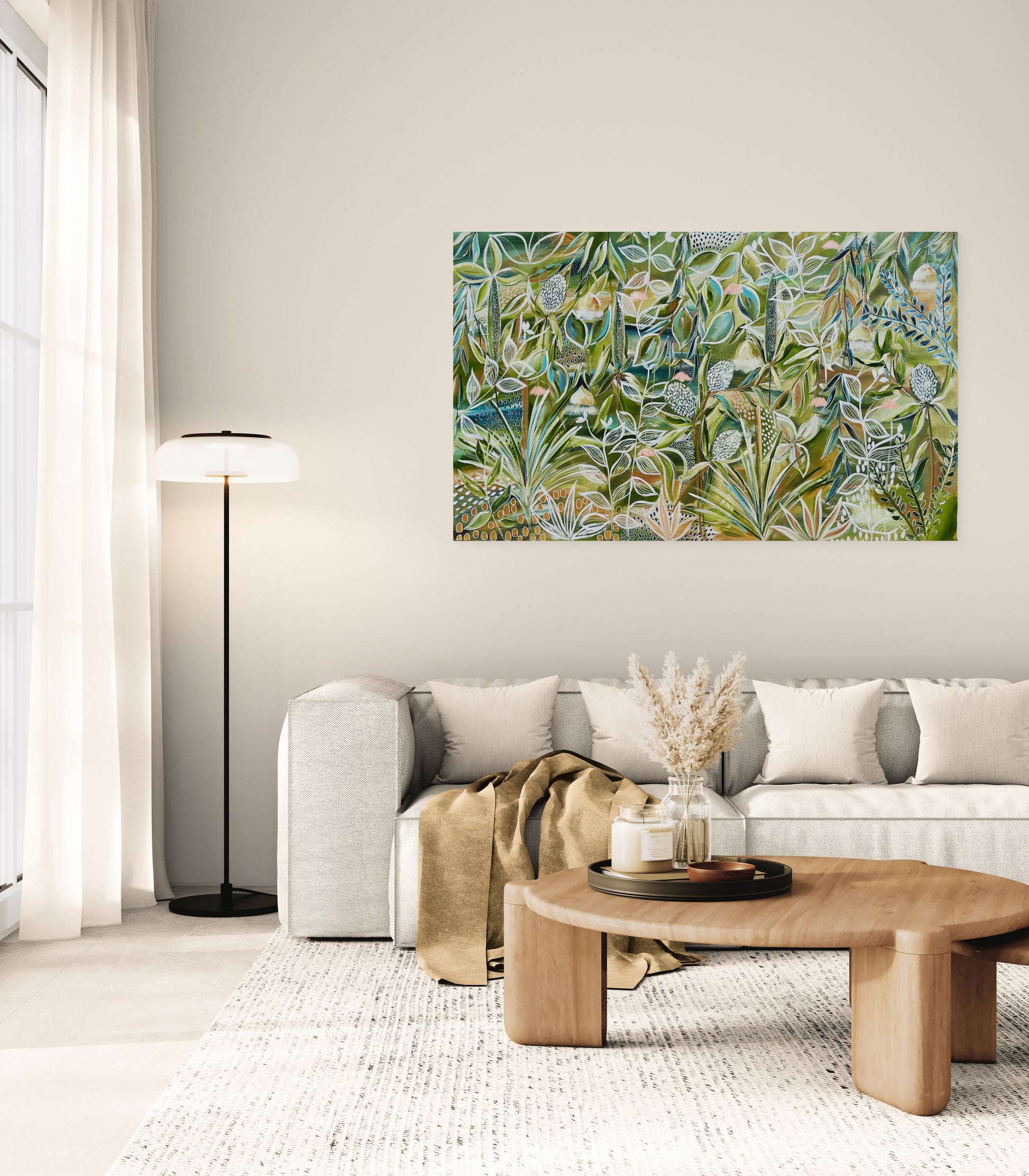 Perfect for botanical lovers, earthy interiors, or anyone drawn to nature-inspired design. Tapestry of the Bush brings warmth, structure, and a calming presence to living rooms, bedrooms or creative spaces.